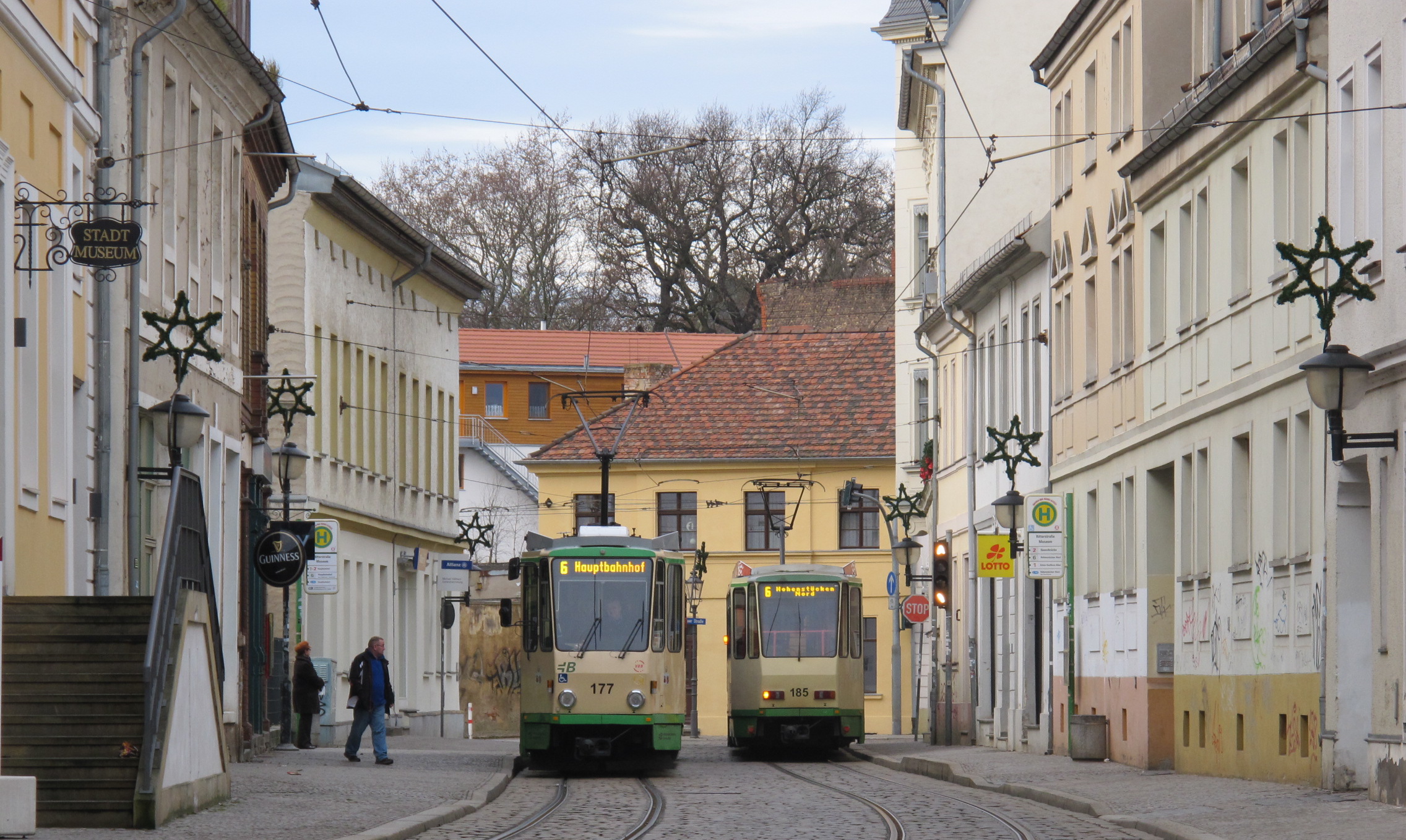 Empfehlenswert sind: das Italienische Restaurant Totò, Ritterstrasse 69 / restaurant Inspektorenhaus , Altstadtischer Markt 9, ausgezeichnet mit ein Bib Gourmand / restaurant An der Dominsel, Neustädtischer Fischerstrasse 14, Regionalweine und Blick auf der Havel und dem Dom / Vietnamesisches Restaurant (auch zum mitnehmen) in der Hauptstrasse.